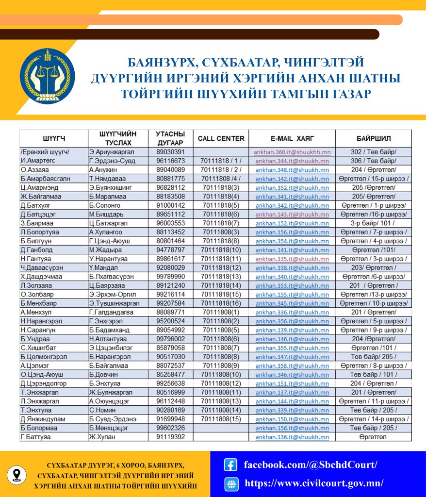 Facebook Хуудас: https://www.facebook.com/SbchdCourt